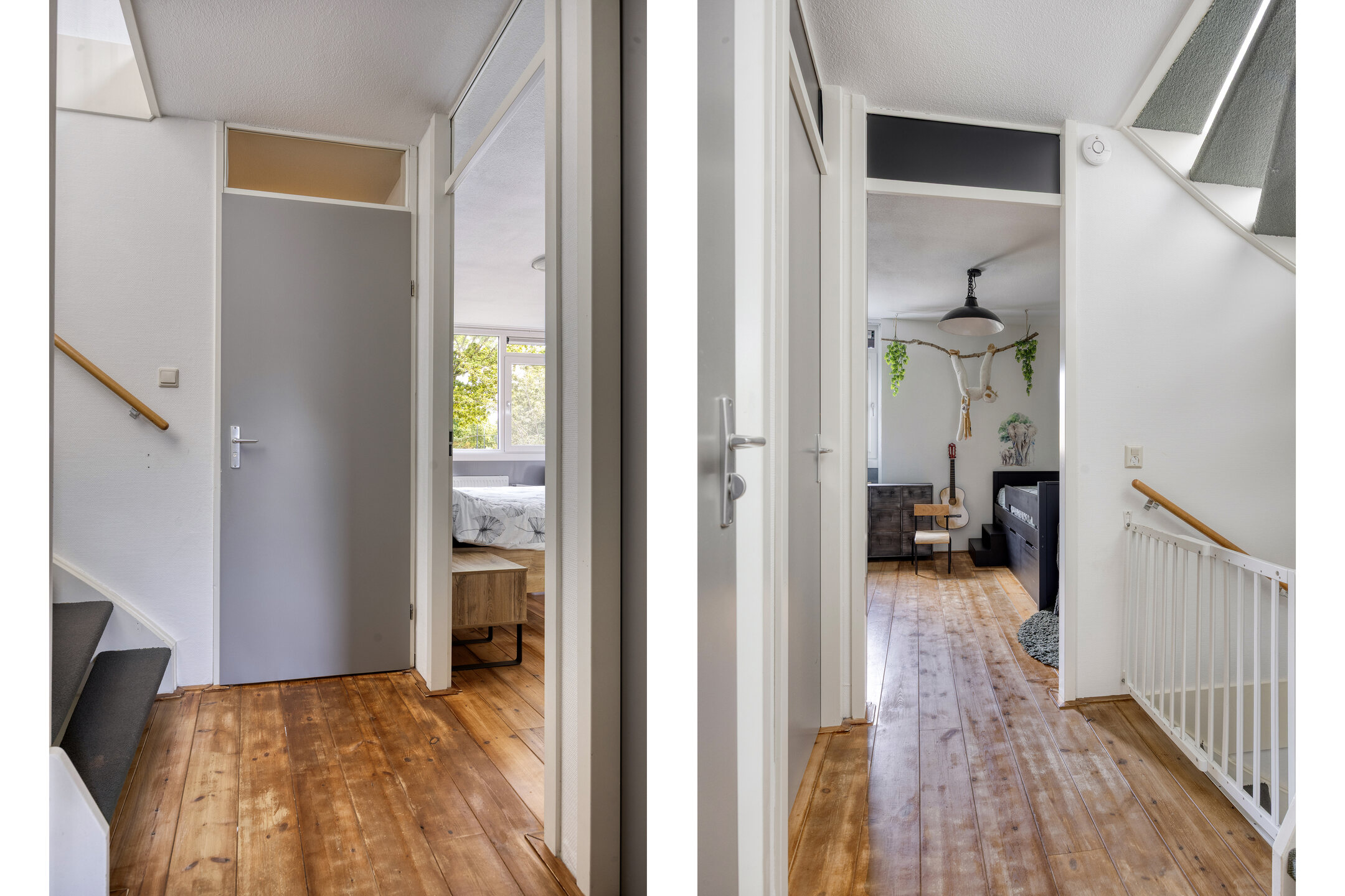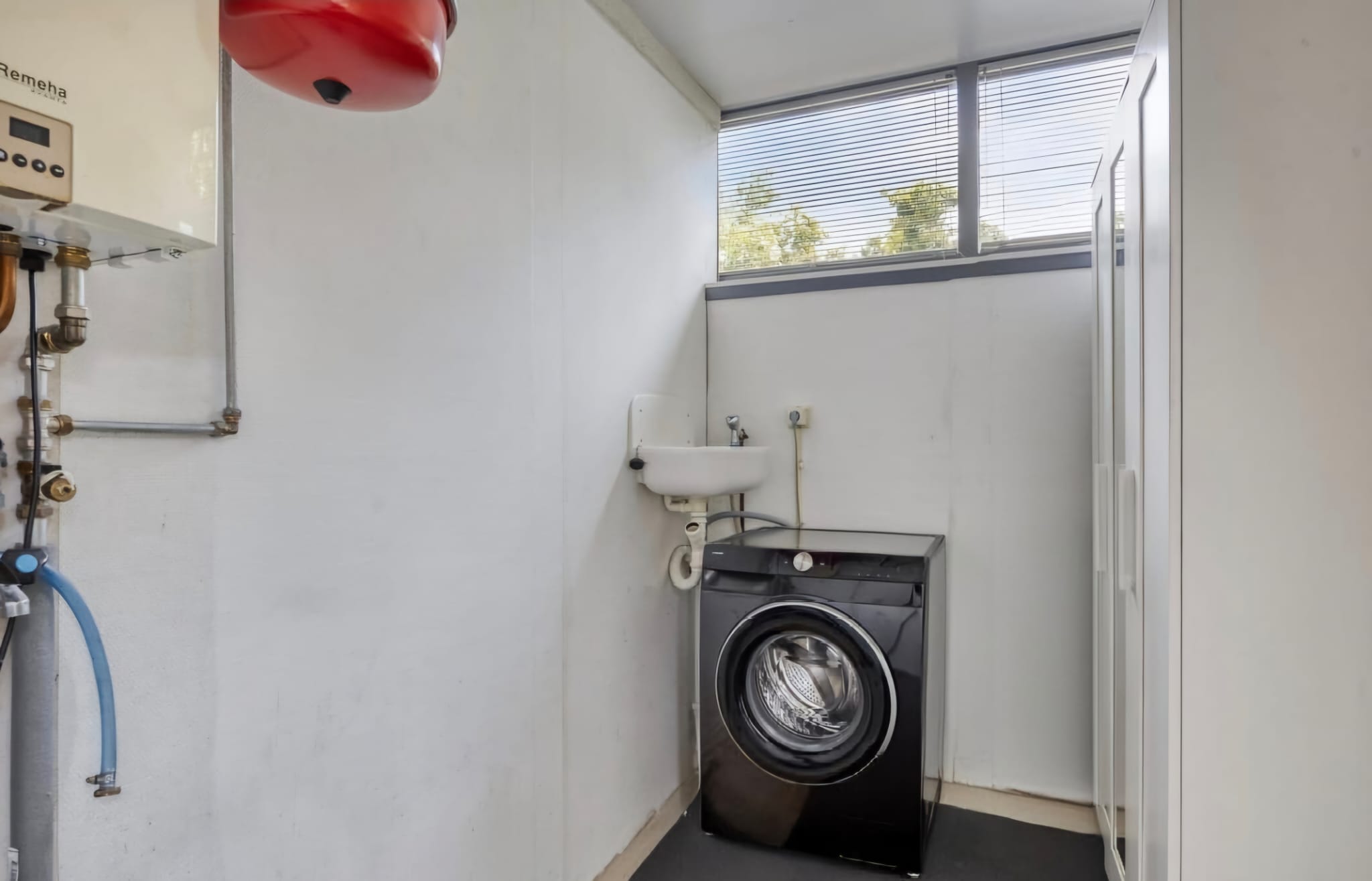 Overloop met aansluitend een kleine 4e slaapkamer (nu in gebruik als berging). Ook is er een kamer met opstelling van de CV-ketel en de aansluitingen voor wasmachine en droger.