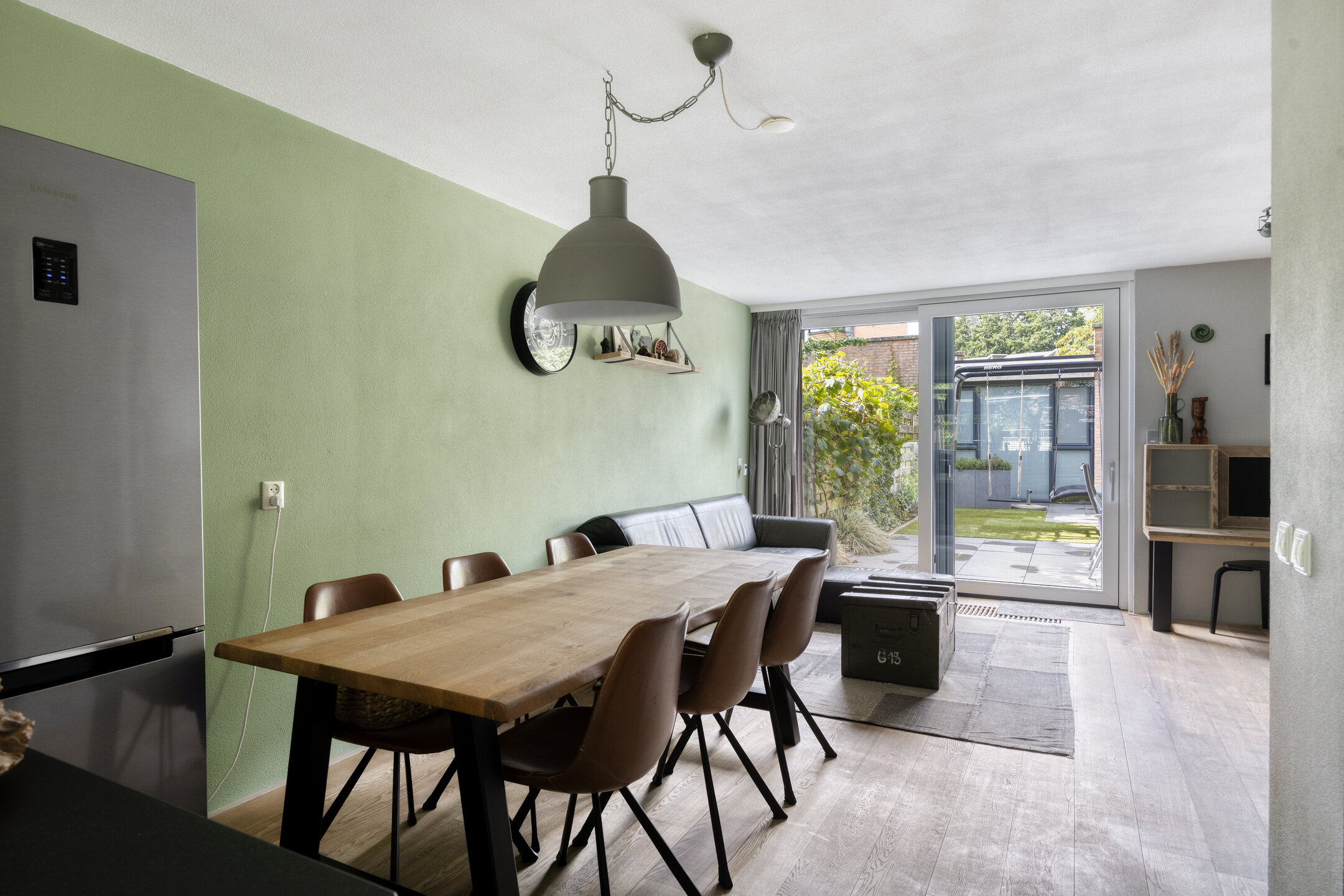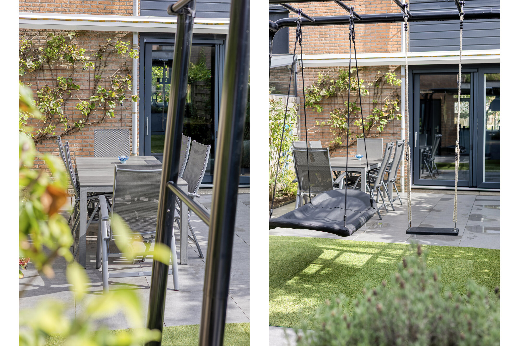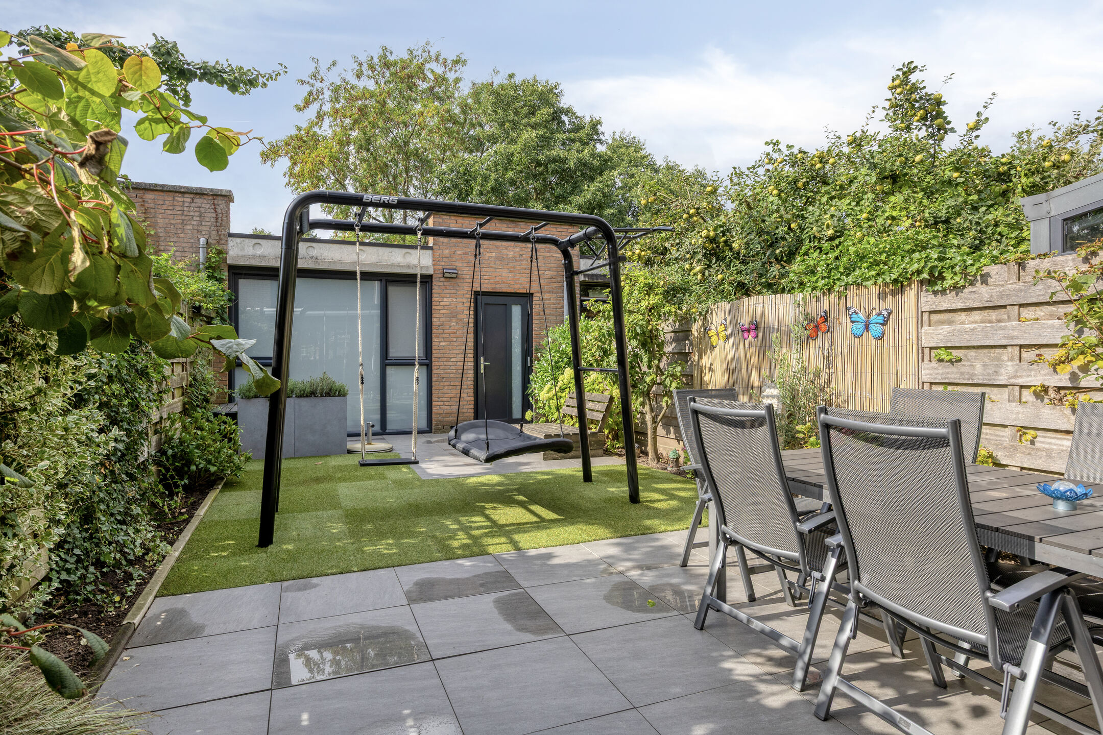 Aan de achterzijde van de tuin is een vrijstaand atelier/fitnessruimte voorzien van elektra en verwarming. Deze ruimte is eveneens vanaf de straatzijde te bereiken. Hier is tevens een afdak als bergrui.
