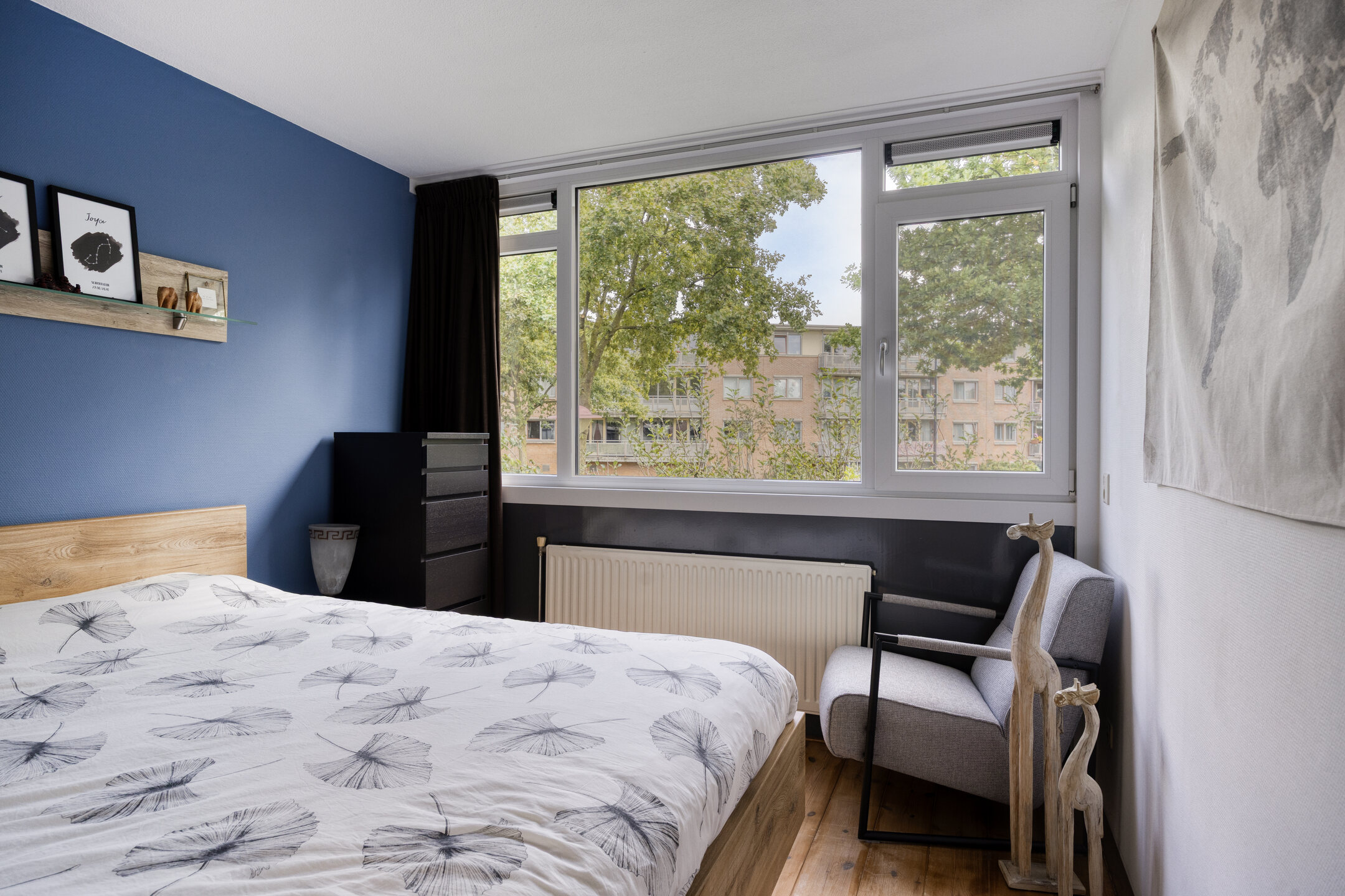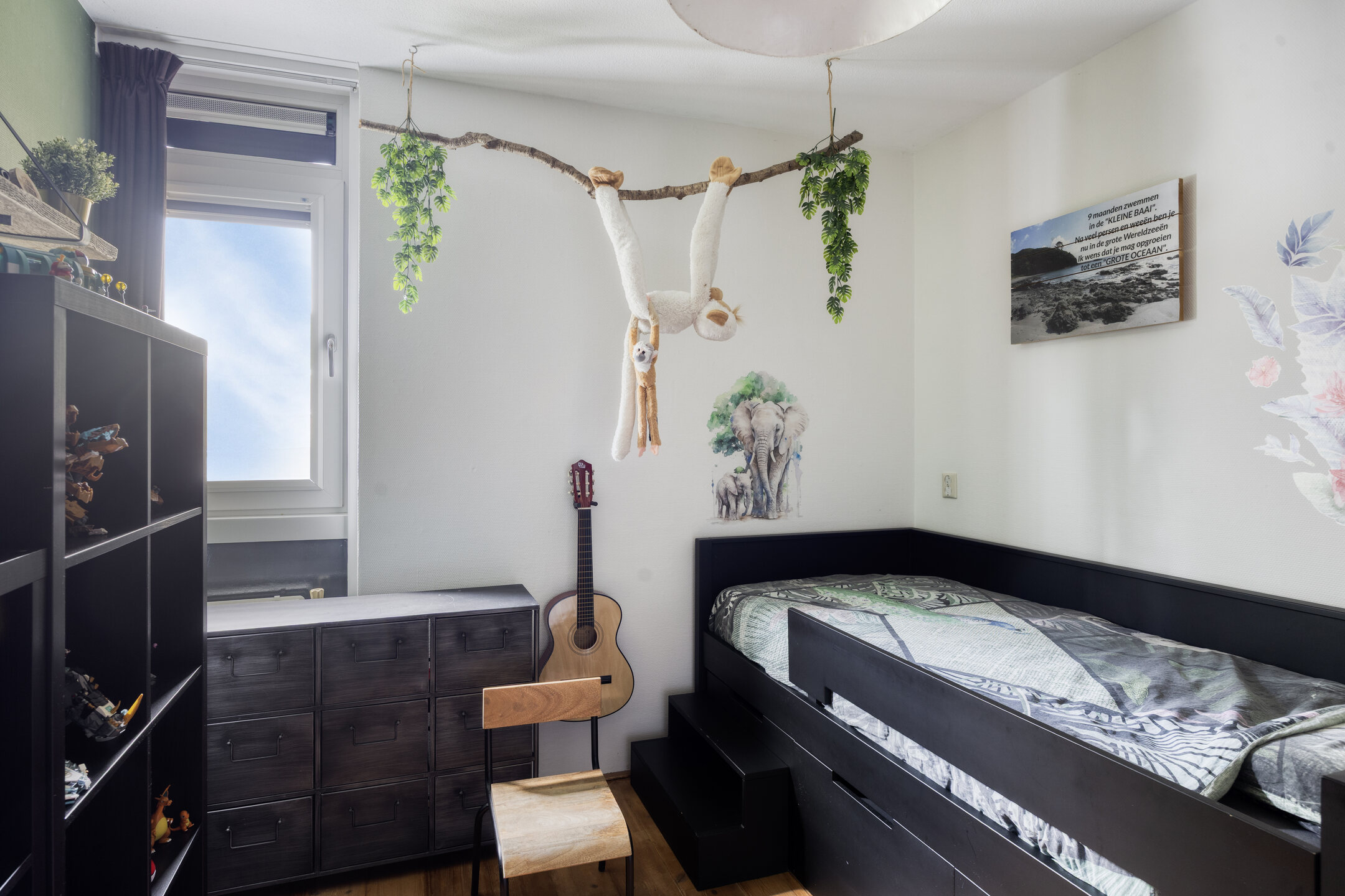 Bij diverse woningen in de straat is het platte dak op deze verdieping gebruikt om een dakterras of uitbouw te realiseren.