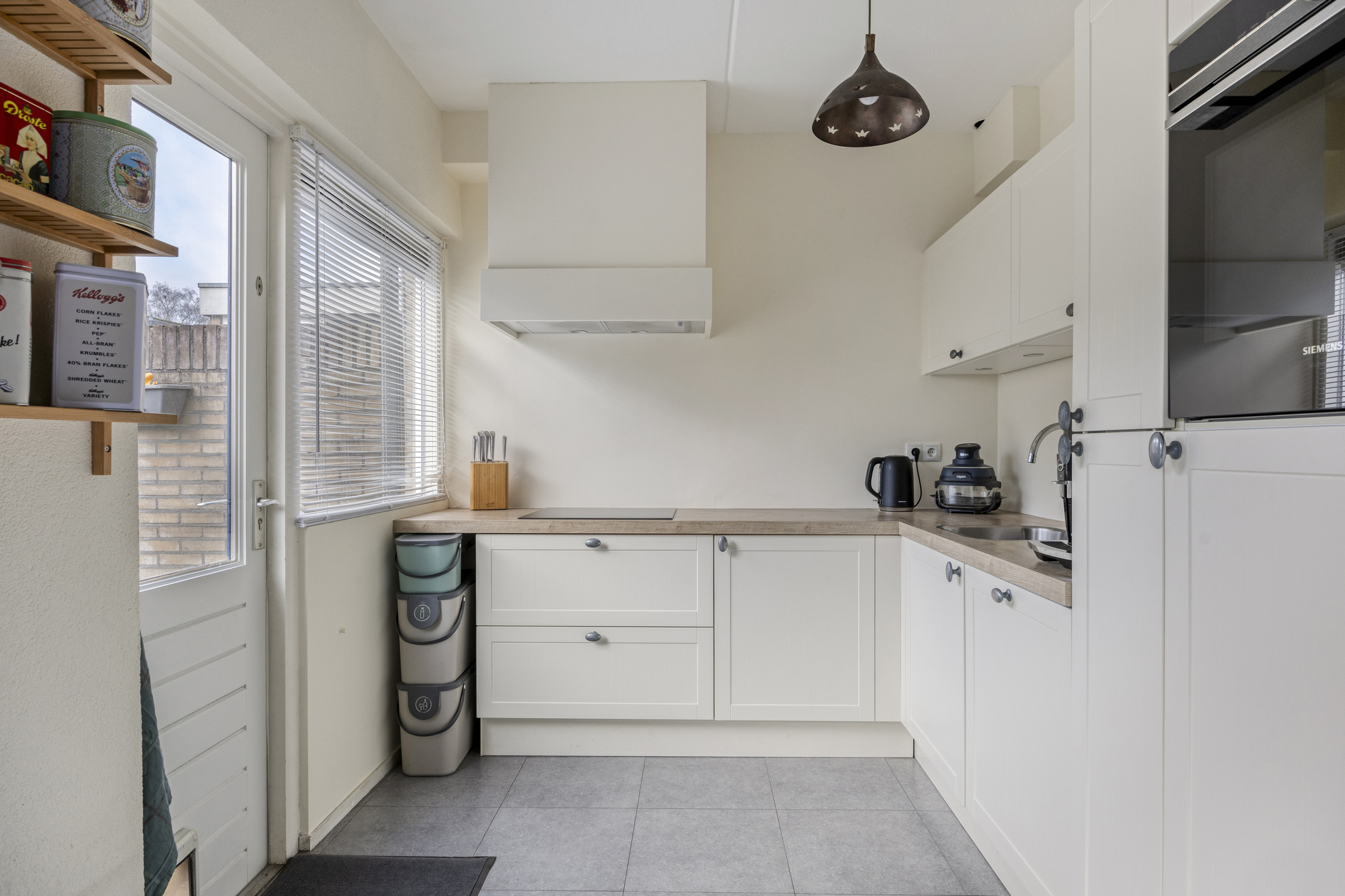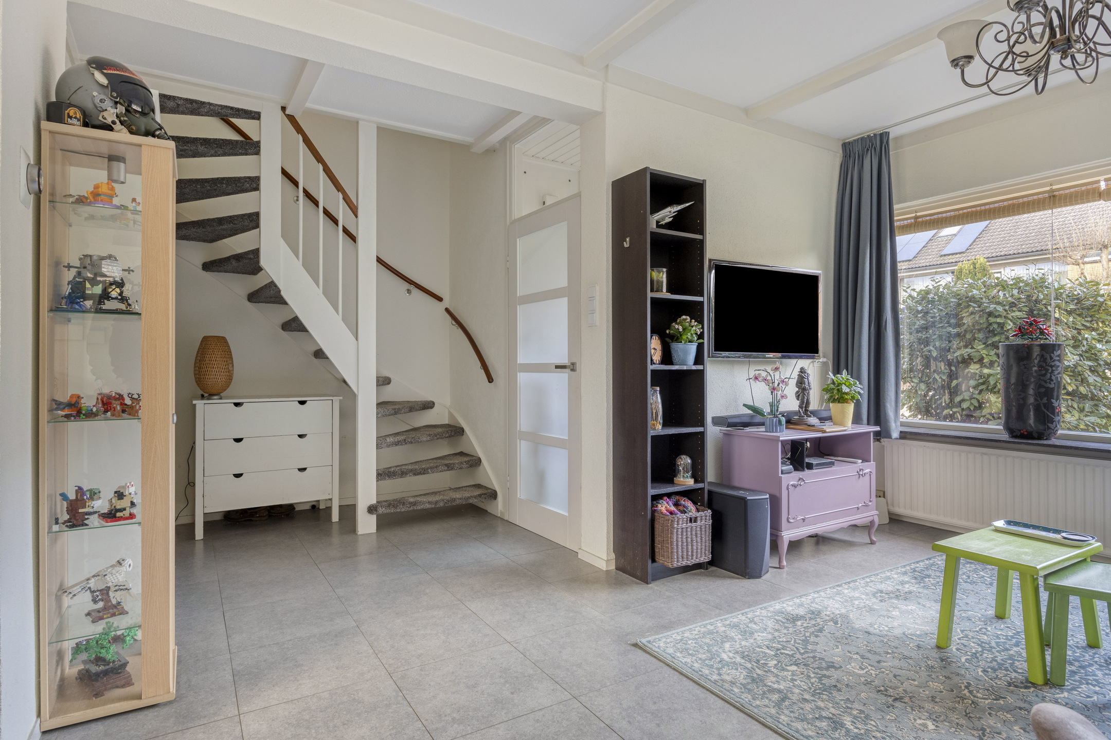 Entree/hal met toiletruimte en meterkast, sfeervolle woonkamer met een fraaie plavuizen vloer en een schuifpui. De halfopen keuken (2019) kent een L-opstelling in een lichte kleur.